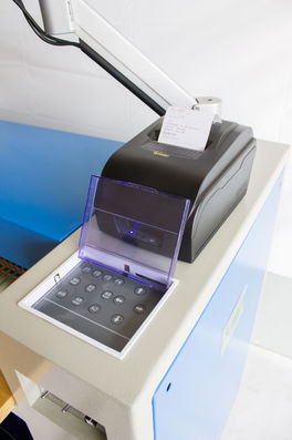 Impressora matricial para emissão de cupom, especificando o nome do proprietário, telefone, responsável, data, cor do couro, tipo de artigo, área quadrada individual de cada pele, área quadrada média das peles, valor do metro quadrado, valor total (calculando automaticamente), número do lote e unidade de medida.
